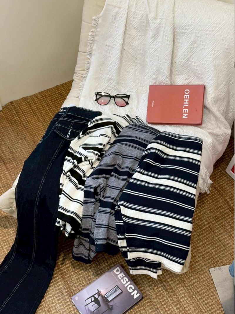 A3099-一字領條紋上衣