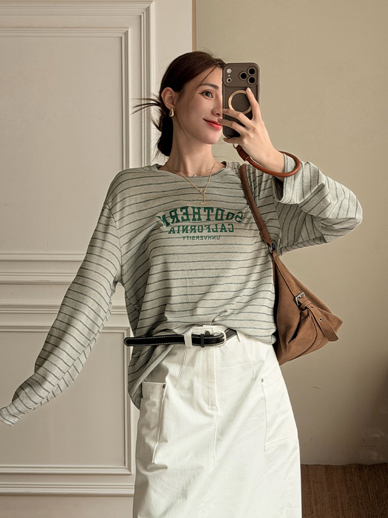 A3305-條紋英字上衣