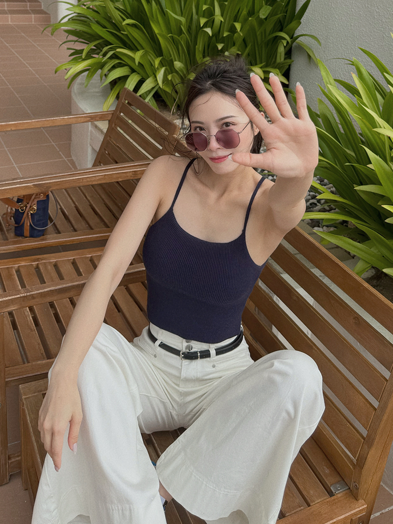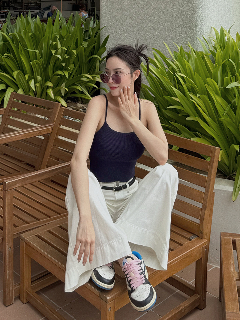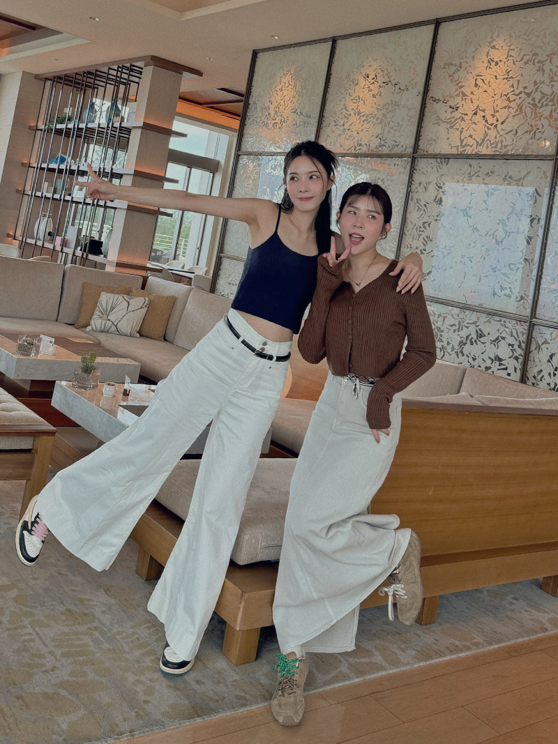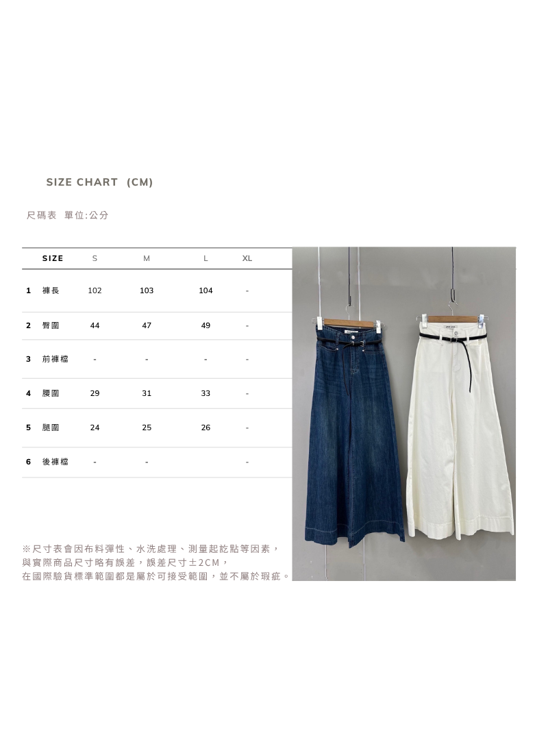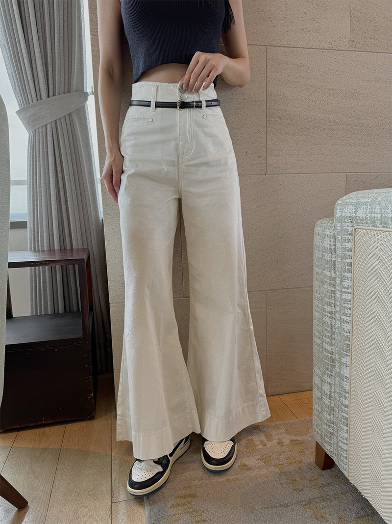 B1567-腰帶高腰落地牛仔寬褲