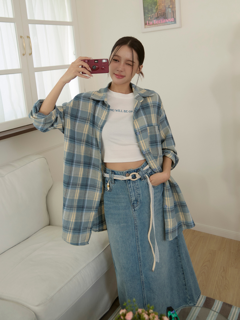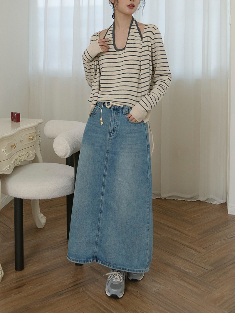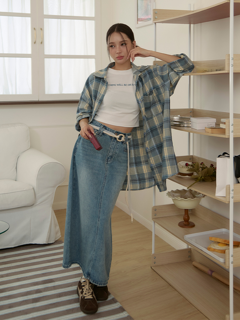 B1640-直筒牛仔裙(附編織腰帶)