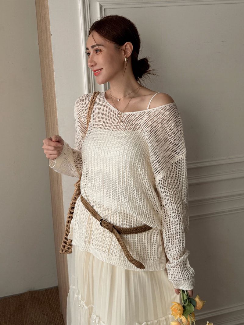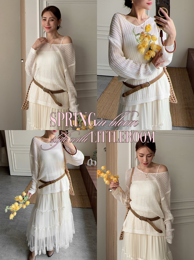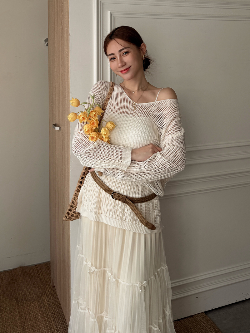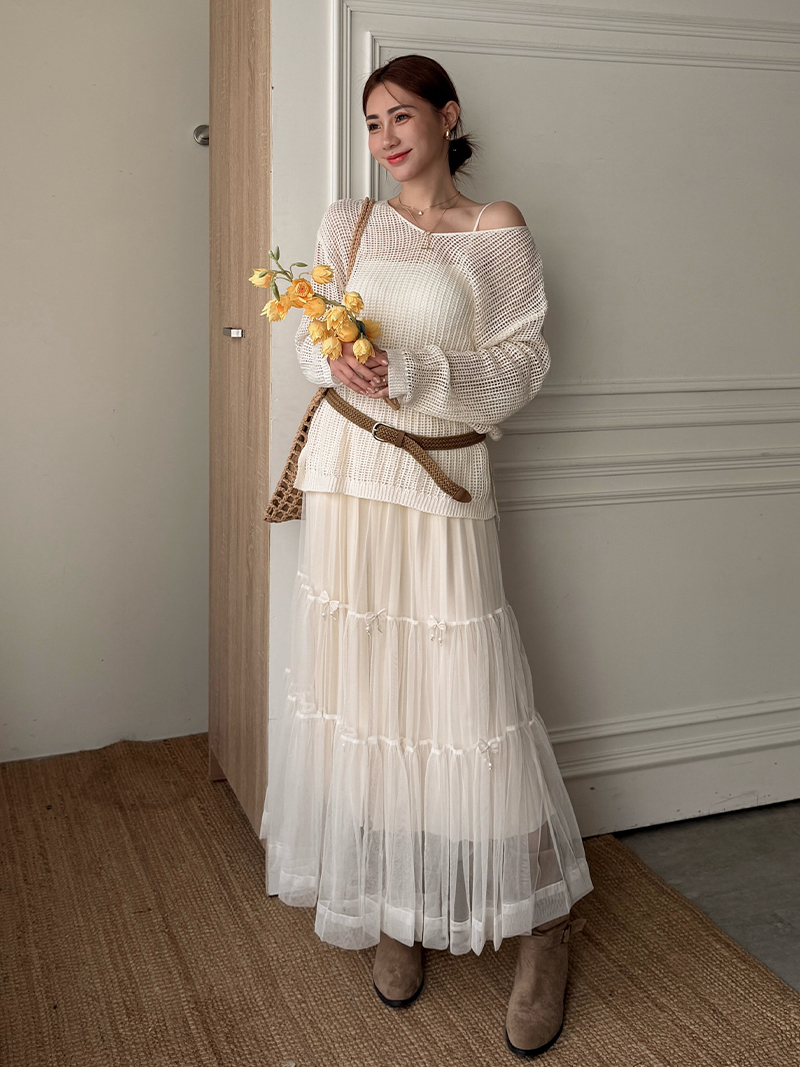 C1808-網格鏤空罩衫連衣裙三件組
