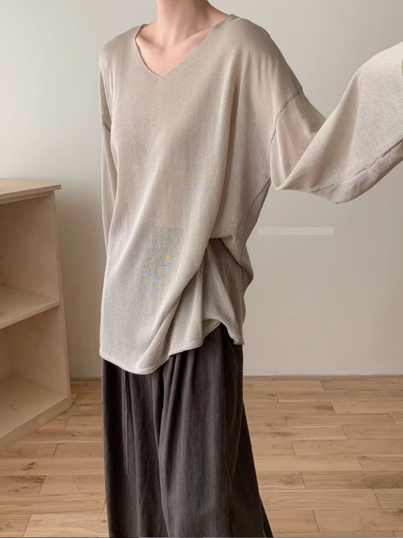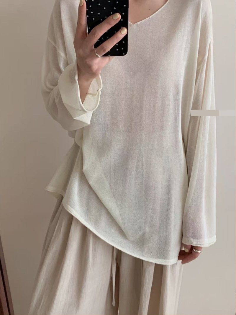 G3568-圓領透膚上衣