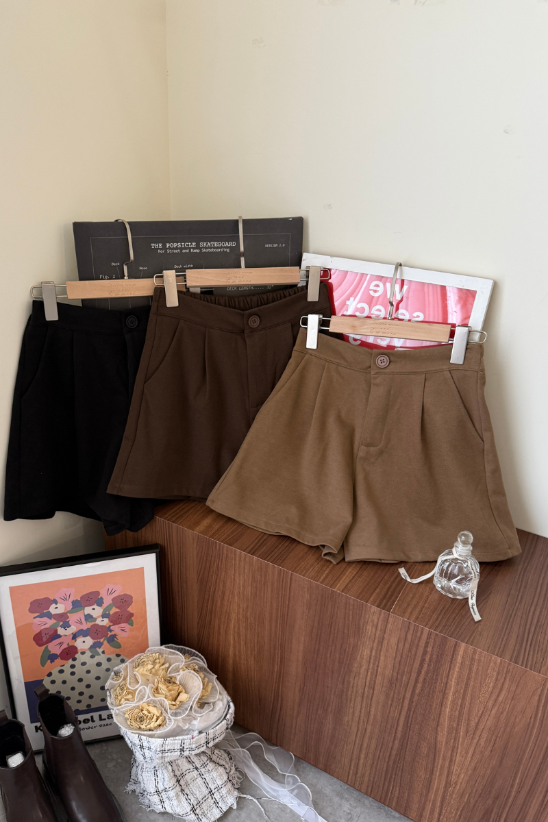 G4659-毛呢抓褶短褲