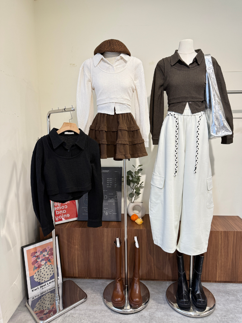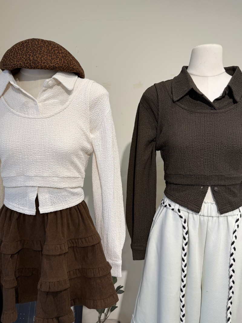 G4858-壓紋感兩穿襯衫SET