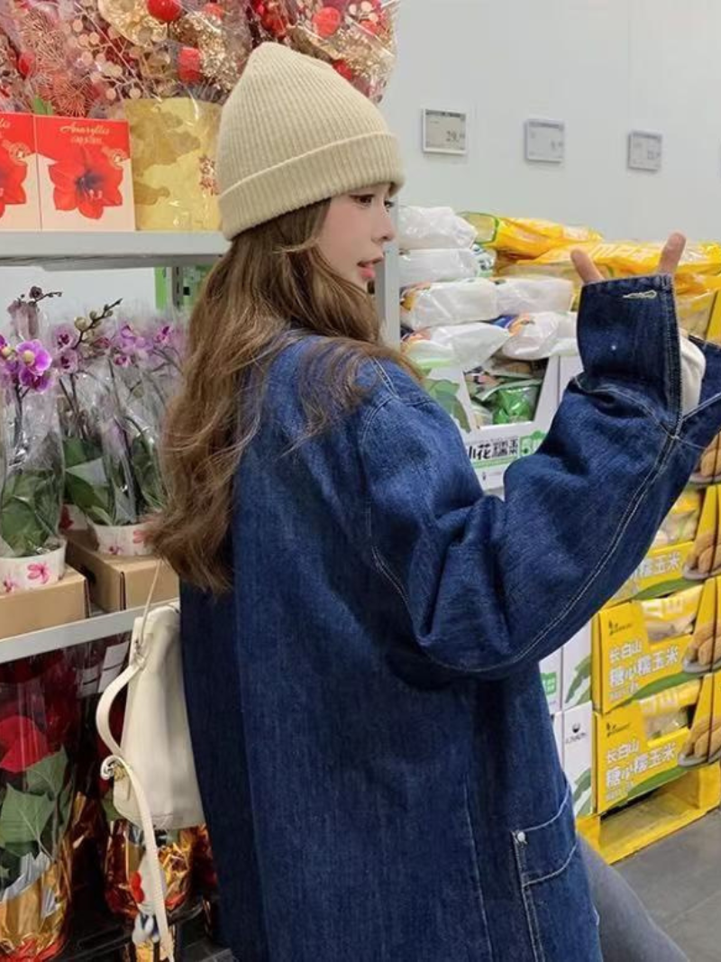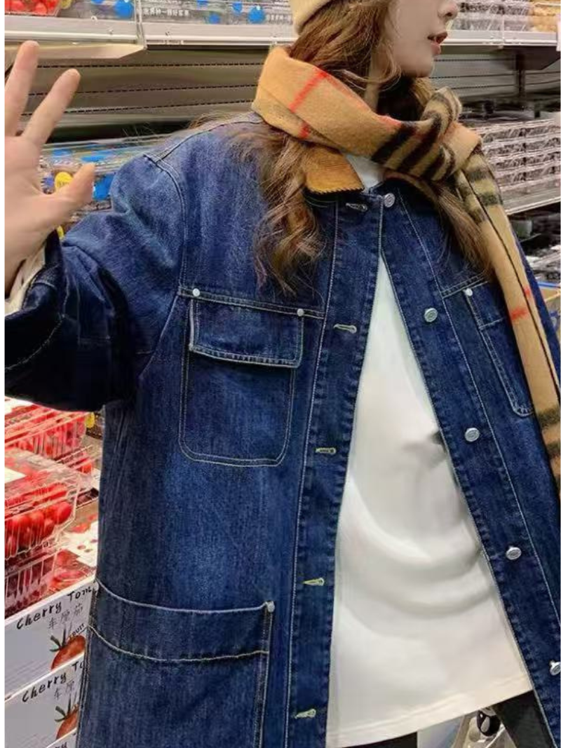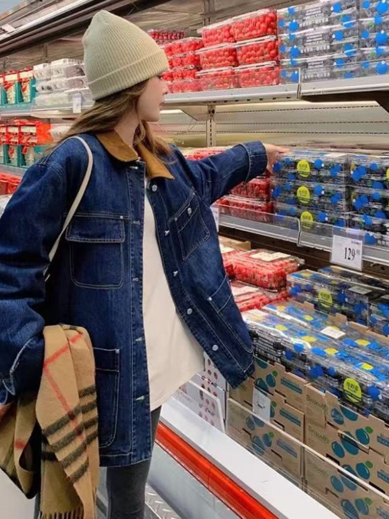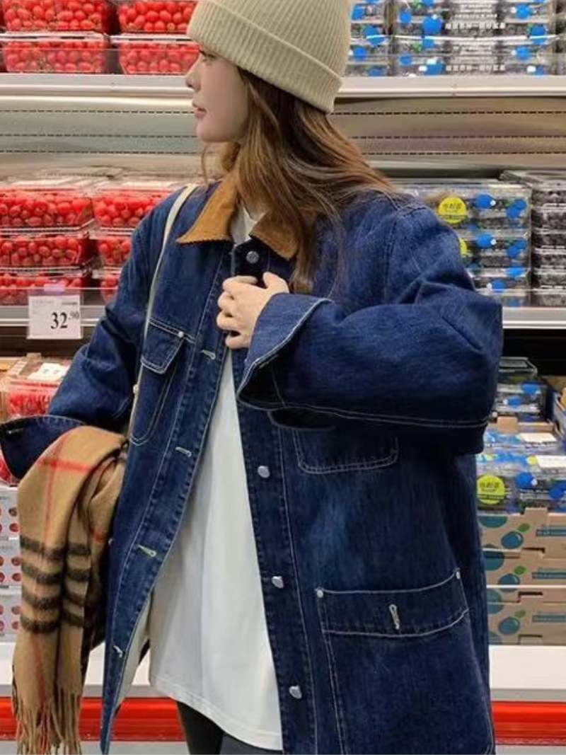 G5170-領拼接燈芯絨牛仔外套(60%白鴨絨)