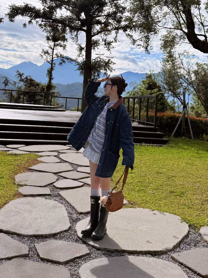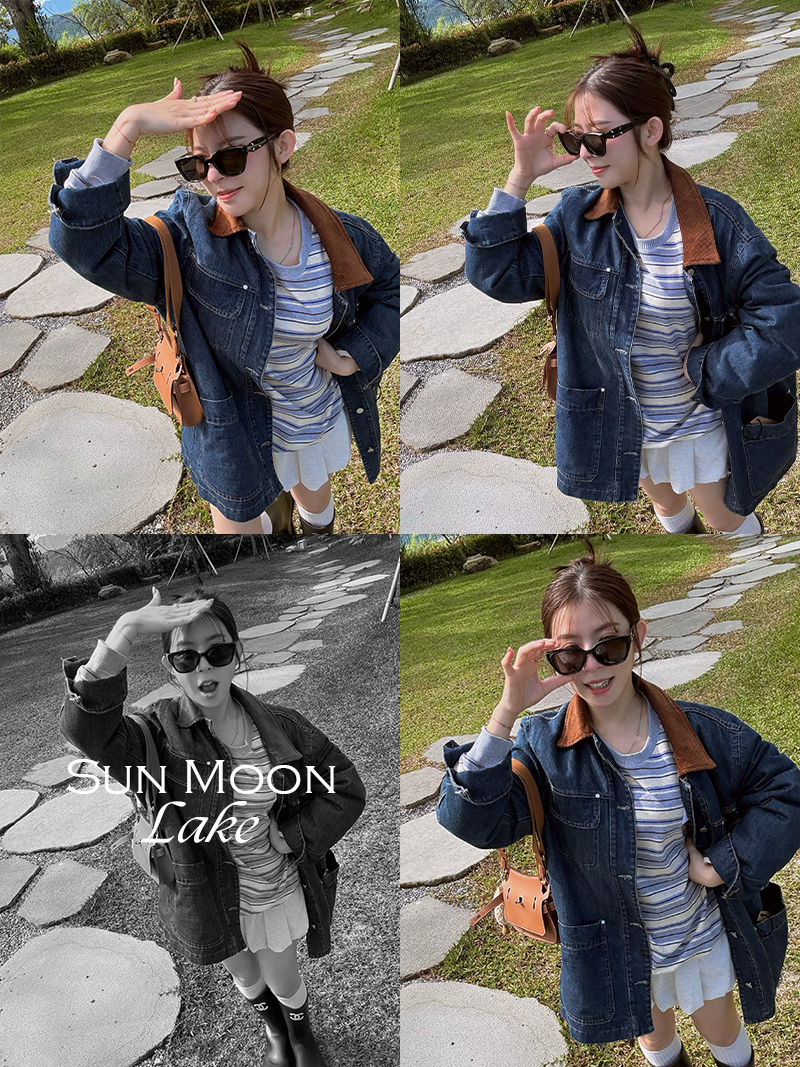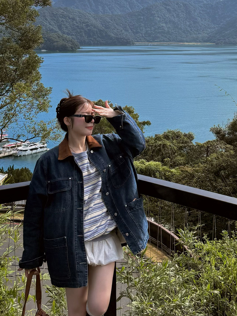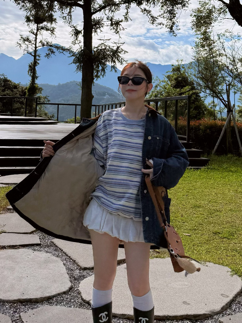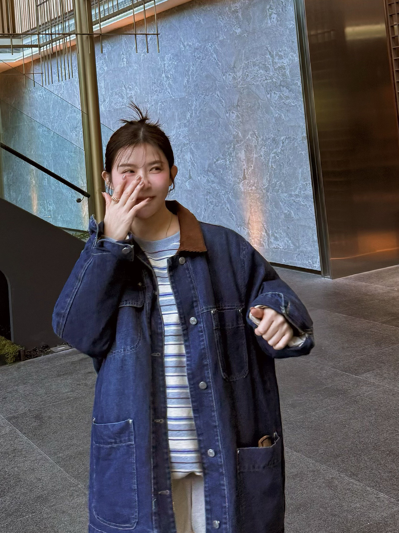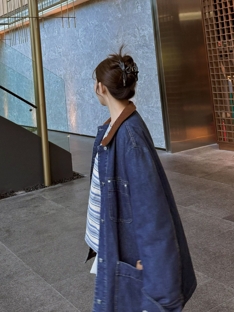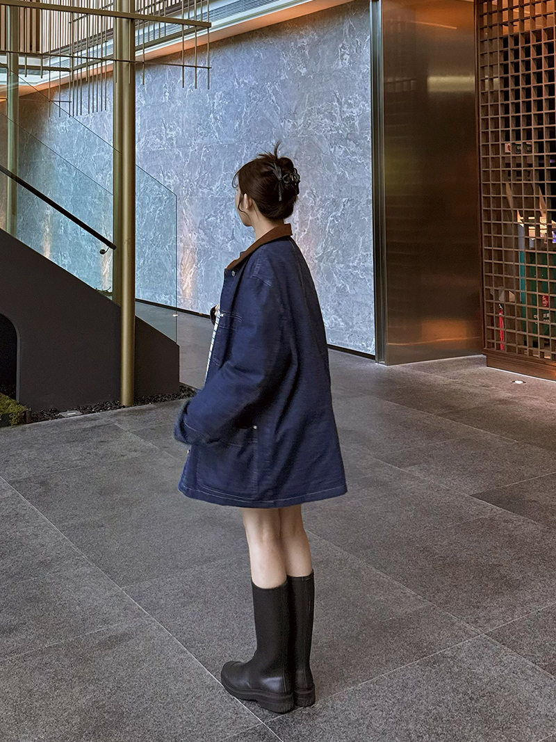 G5170-領拼接燈芯絨牛仔外套(60%白鴨絨)