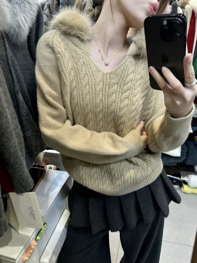 G5702-拼接毛毛麻花上衣(毛可拆)