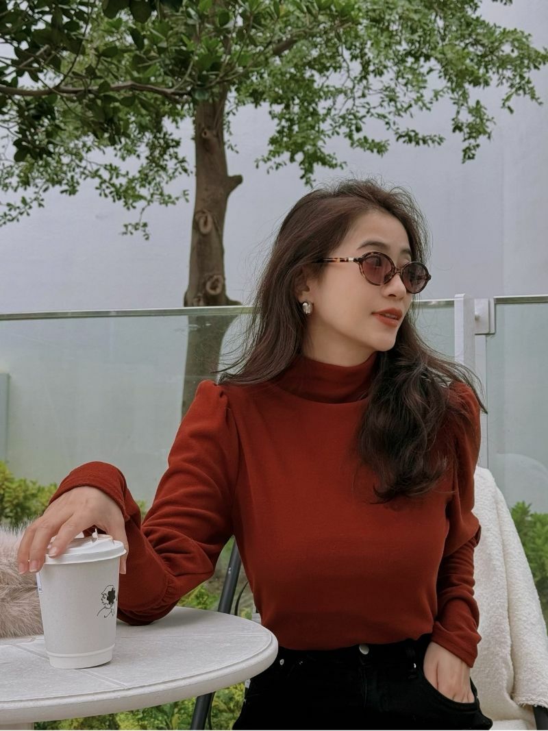IA676 立領泡泡袖羊絨上衣