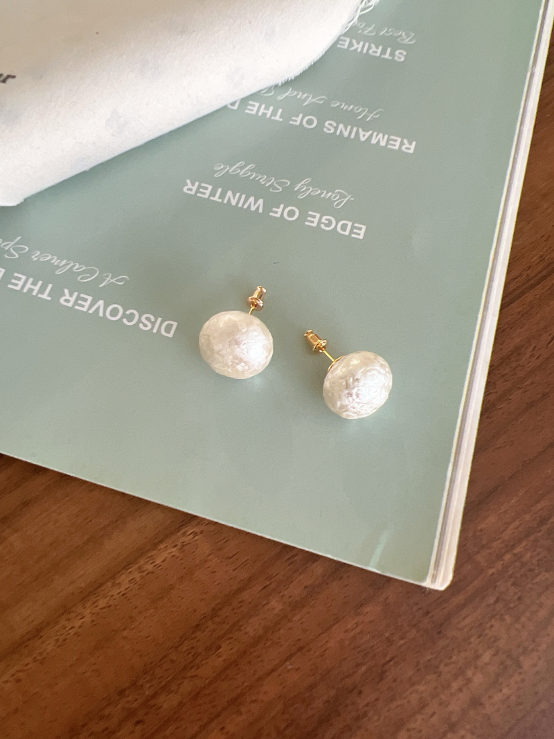 IB868-髮絲紋珍珠耳環