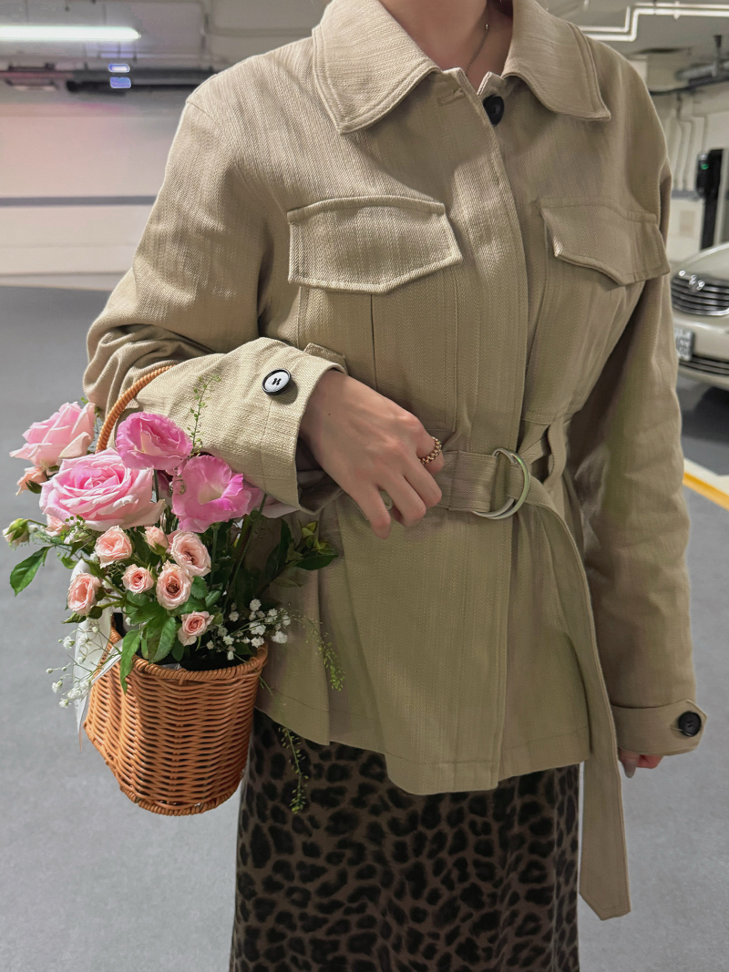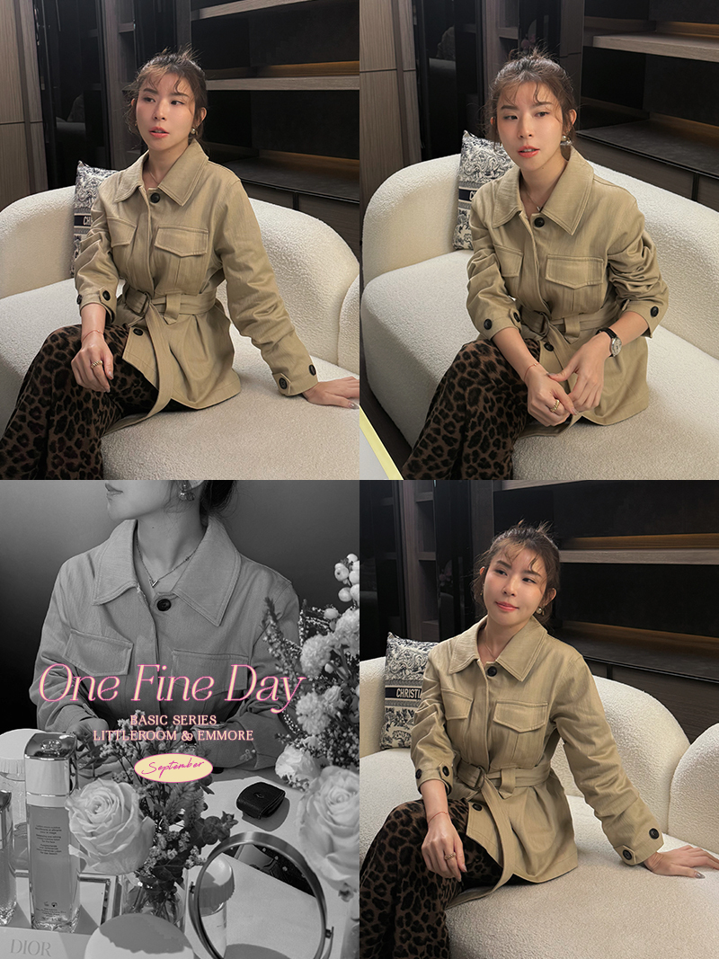 IB910-復古翻領單排釦修身外套 (附腰帶)