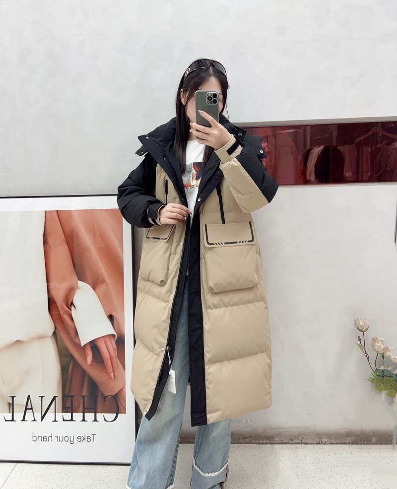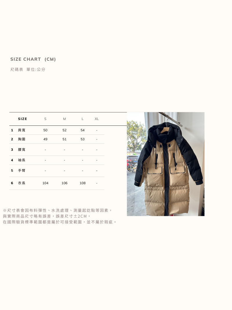IF850-拼接撞色大口袋長版外套(90%白鴨絨)